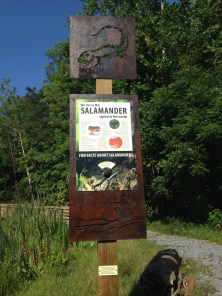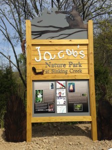 In 2014, the Tennessee Department of Agriculture Nonpoint Source Program awarded a $20,000 grant for an educational sign that explains the probable causes of the bacterial contamination to Sinking Creek and how it is being restored, provides information about the sources of E. coli bacteria, and teaches how to reduce the risk of contamination and illness from this bacteria. In 2016, this sign with Jacob’s kindergarten signature was placed at the main entrance beside 1214 King Springs Road. It introduces visitors to how Jacob loved to live and explains the tragedy that he endured with the goal of educating, inspiring, and saving lives. It also describes Sinking Creek and some historical developments of the acreage before it became a park. The grant also paid for three interactive signs located during the summer of 2017 along hiking trails within the park. The signs teach visitors about salamanders, turtles, and pollinators particular to Jacob’s Nature Park at Sinking Creek. Essyx Design & Fabricators, Inc., located on the other side of Bell Ridge across from the park, designed and created the signs.